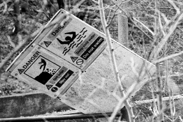 Texture and shape in a disused quarry seen with 35mm black and white film