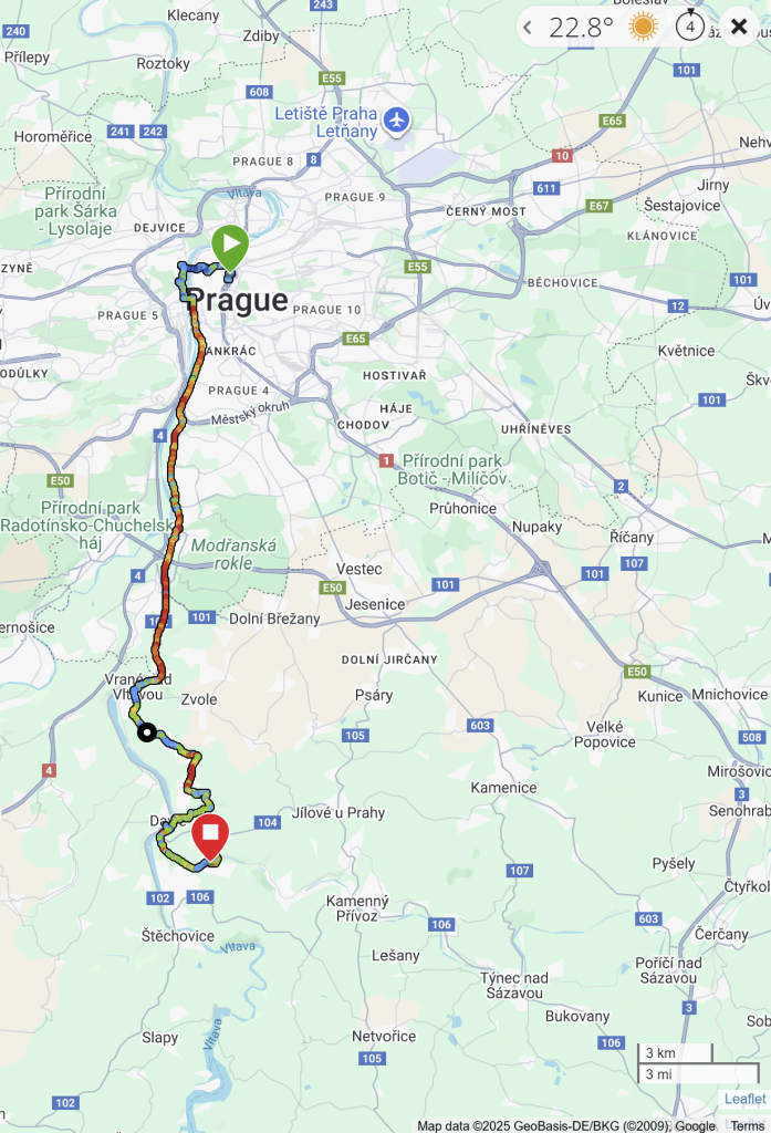The well-defined cycle route was absolutely flat for the first 20km, until we reached Vrané nad Vltavou and left the banks of the river to cut across a corner and our first experience of holiday-climbing began. Our holiday’s meta-narrative of ‘poor navigation on my behalf’ began in earnest, and would try Dean’s patience until the very end of our time together. In the heat, and on loaded tourers, the ascent felt tough, on a mixture of back roads and dirt tracks. In my ignorance I wondered if all of Czechia’s country lanes would be unpaved.