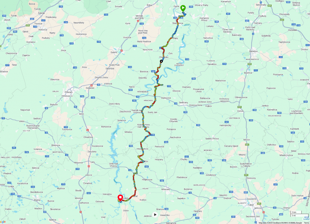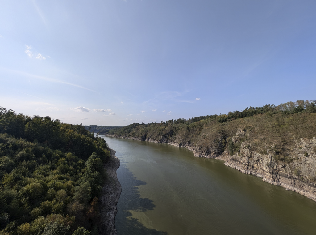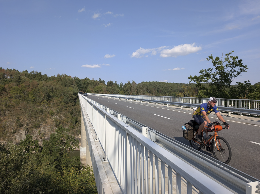 Towards the end of the day, as we were looking for a campsite, we crossed both the Vltava and the Otava rivers near Zvíkovské Podhradí. Both rivers were running through deep gorges in the countryside, and we rode across a couple of high level bridges.