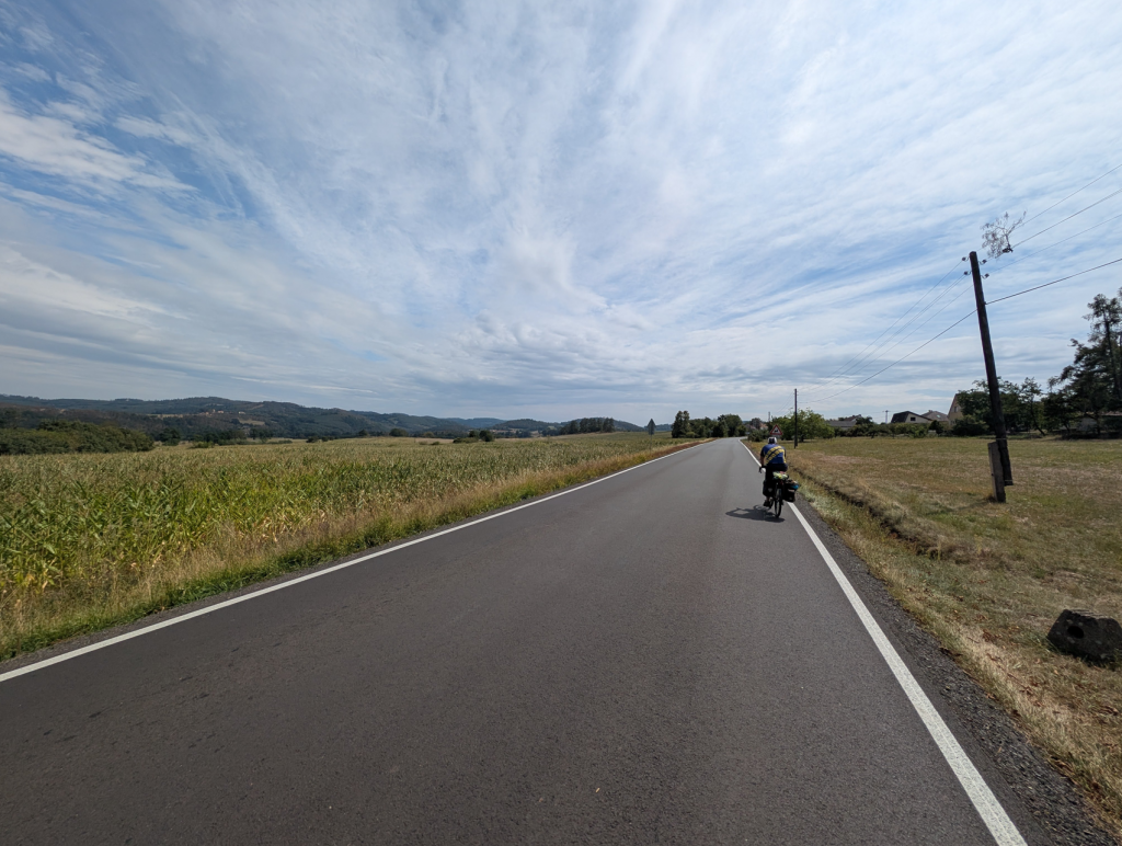 When we found a village with a shop, we’d refill water bottles. We saw nobody. The roads were empty, and perhaps this was my route – away from towns and villages – but we cycled almost car free for most of the day and if someone did pass, it was universally with plenty of space. The late August sunshine was beating down on us, and we occasionally had to take a break in bus-shelters or on benches beneath trees.