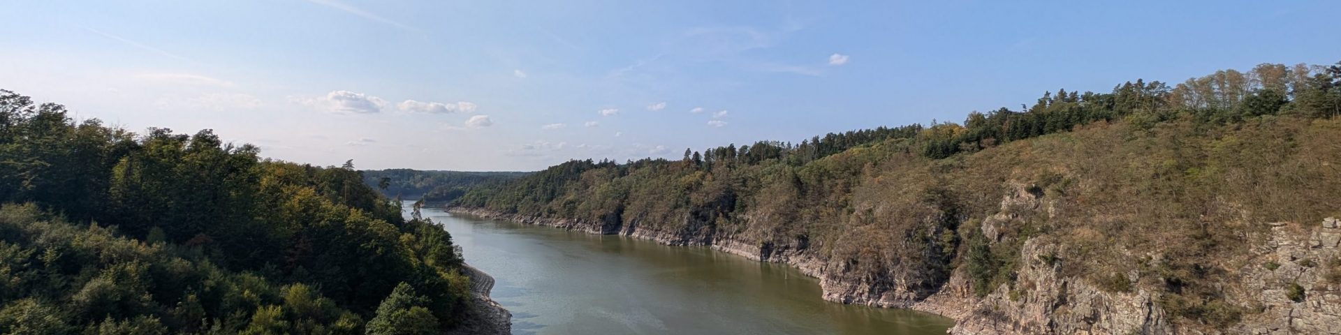 Towards the end of the day, as we were looking for a campsite, we crossed both the Vltava and the Otava rivers near Zvíkovské Podhradí. Both rivers were running through deep gorges in the countryside, and we rode across a couple of high level bridges.