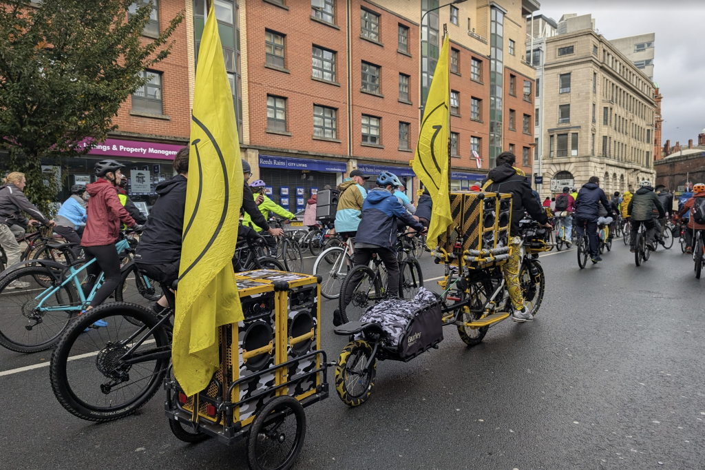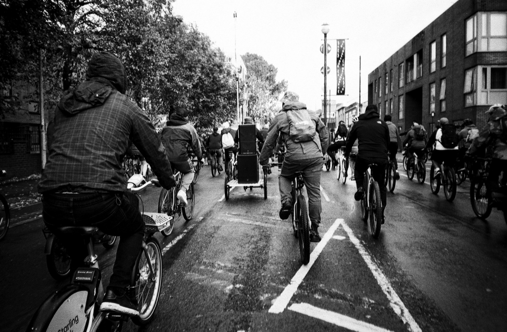 I was anxious about joining in with “Drum & Bass On A Bike”, but I didn’t have to be: I thought I might not fit in with the cool kids, but Dom Whiting has created an event which attracts the most diverse group of people you could ever meet, and for a short while we took the streets of Manchester.
