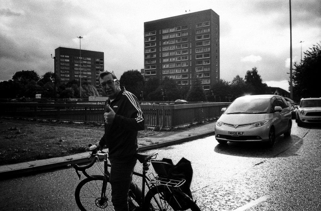 I brought a cheap point and shoot camera, something I find easy to use while cycling. A Boots 350 auto-focus camera. The lens isn’t great, and the vignetting gives a moody feel when used with black and white film. I loaded a roll of Kentmere Pan 100 and clicked away until the film ran out…