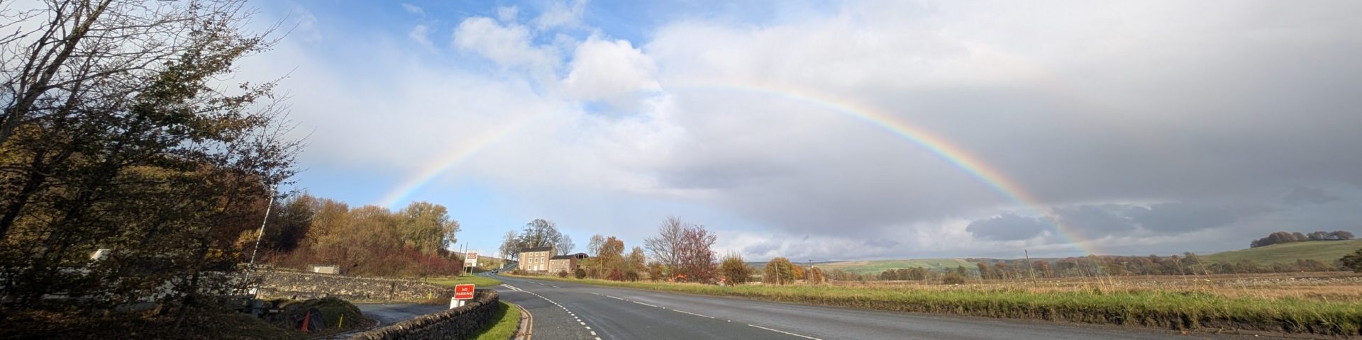 My Grandma use to have a glass lampshade on her windowsill, and on a bright morning the sunlight would refract miniature splashes of rainbow colours throughout the room. We humans live in a world where a narrow band of electromagnetic radiation creates the impression of light and dark, and rarely notice the light itself, only the absence of it. Yet on a day of sunshine and showers, a rainbow will lift our eyes from the ground to the sky in awe and wonder.