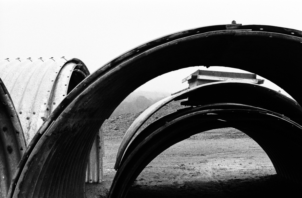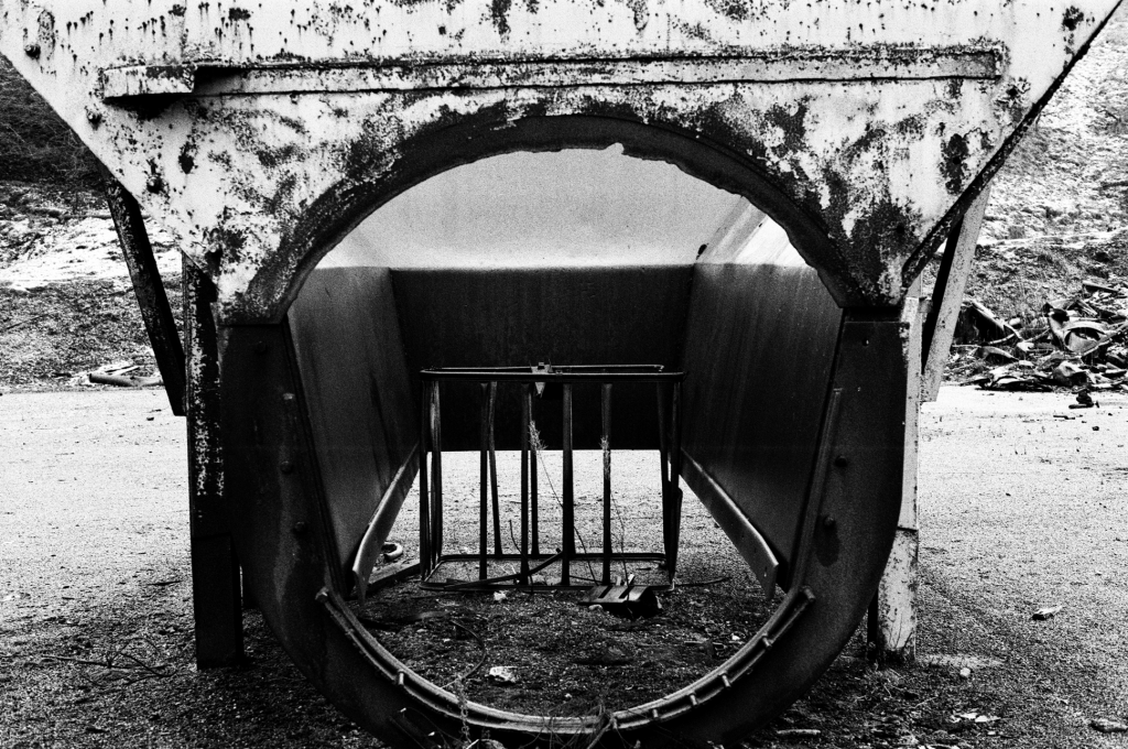 The quarry is cris-crossed with footprints and tyre tracks. This is clearly a well used recreation ground. Machinery and metalwork lay twisted and strewn across what could easily have been a 1970s sci-fi backdrop. What follows is what I saw through the lens. A mixture of textures, shapes, reflections and patterns.