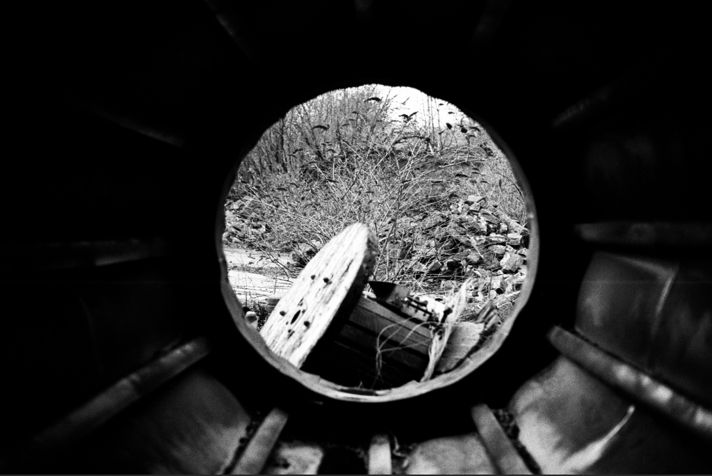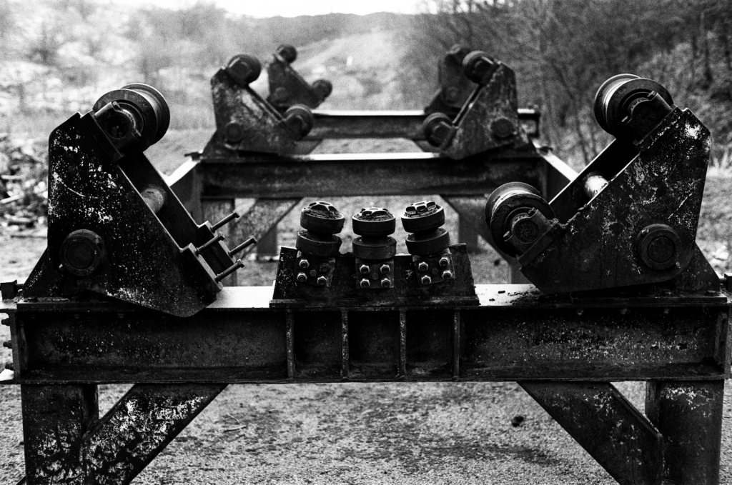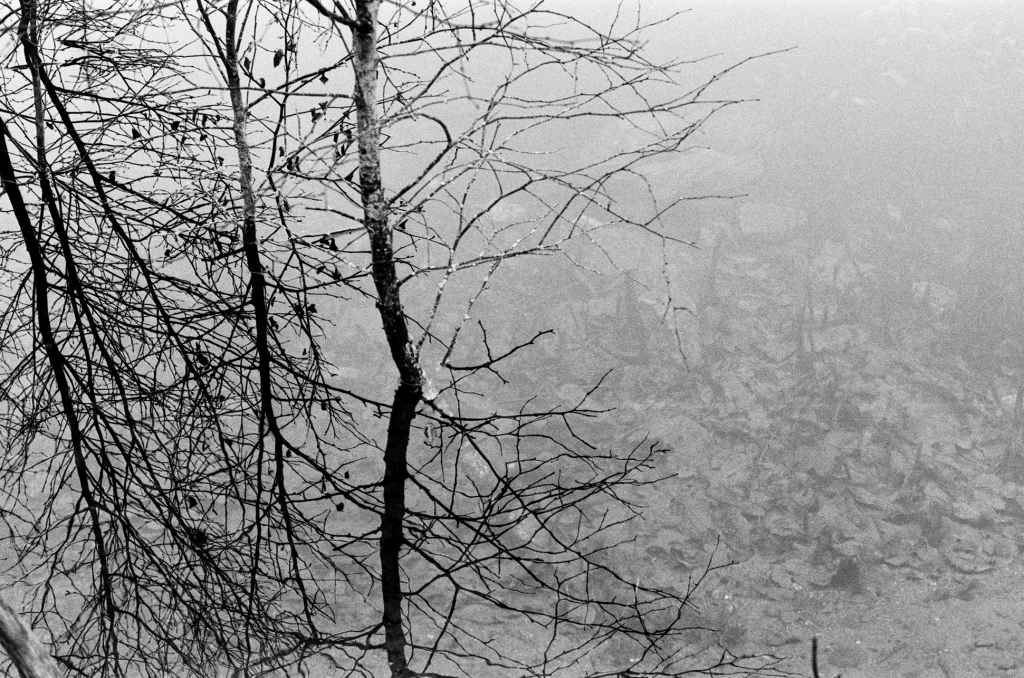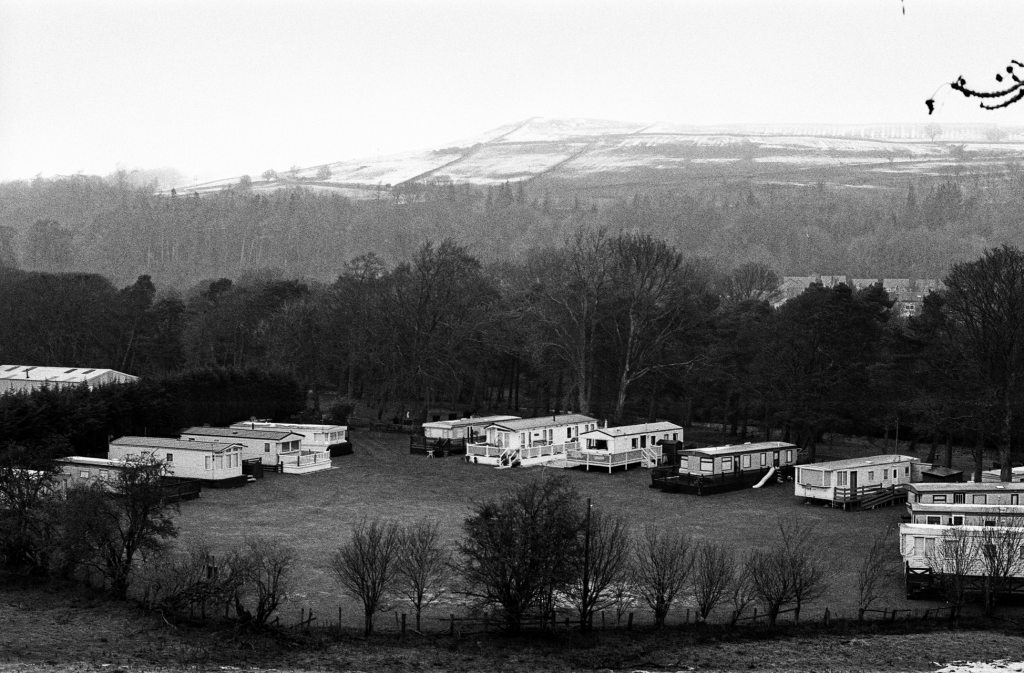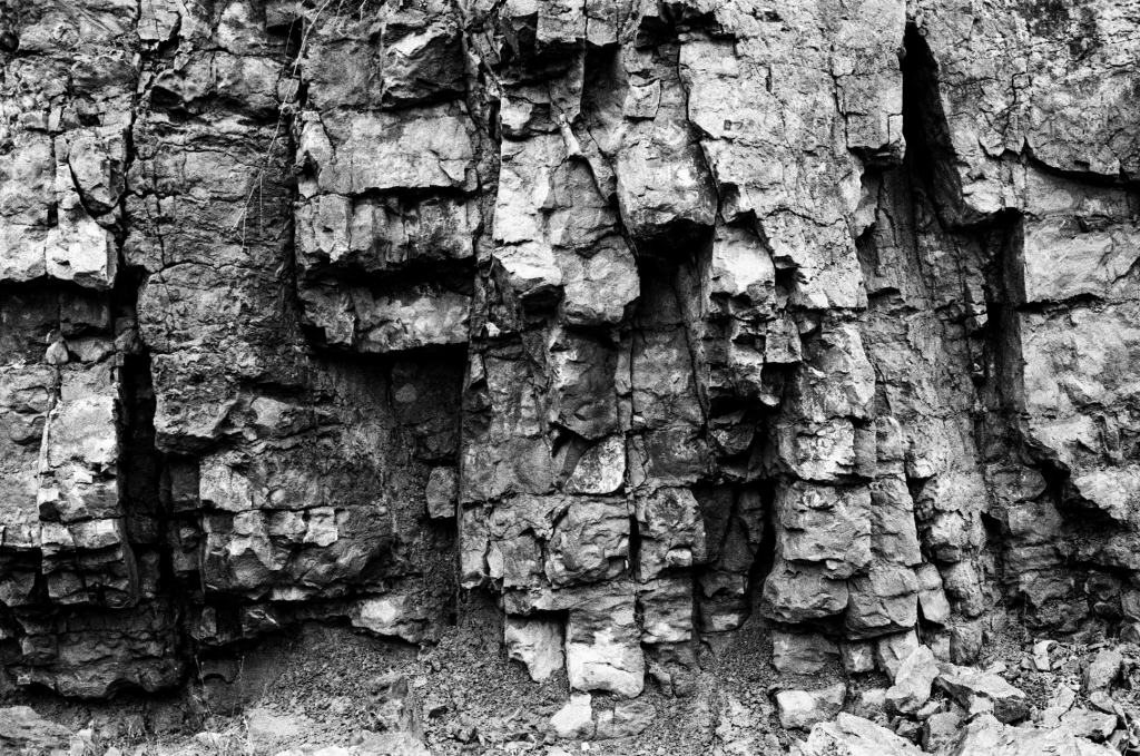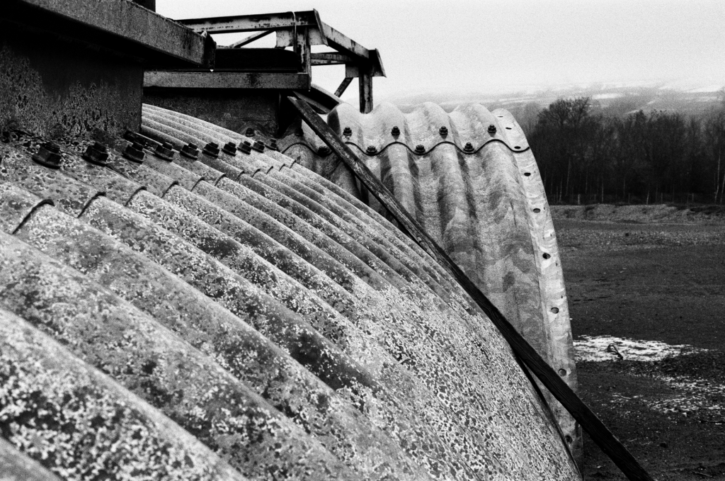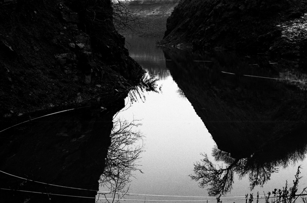 My little Pentax MX had been serviced and I was keen to take a roll of Kodak TMax 400 black and white film to see what shapes and textures I could discover. Strolling from Frosterley, across the Weardale railway and following the Mineral Valley Walk, it is easy to find a disused quarry. A quick internet search provides some suggestions to the name, but as I don’t personally know I shall just refer to this as “Quarry (disused)” as per my Ordnance Survey map. On the way I crossed the River Wear and was able to see down into a seasonal caravan park. It felt very much “out of season” in this chilly wind.
